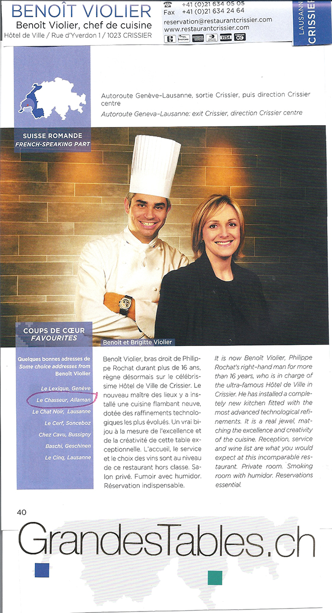 Article paru dans Les Grandes Tables. ch 2012-2013.